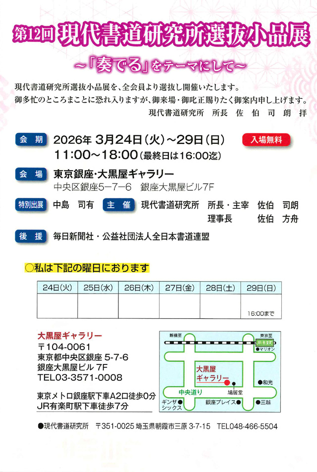 2026年 毎日書道展新会員作家展